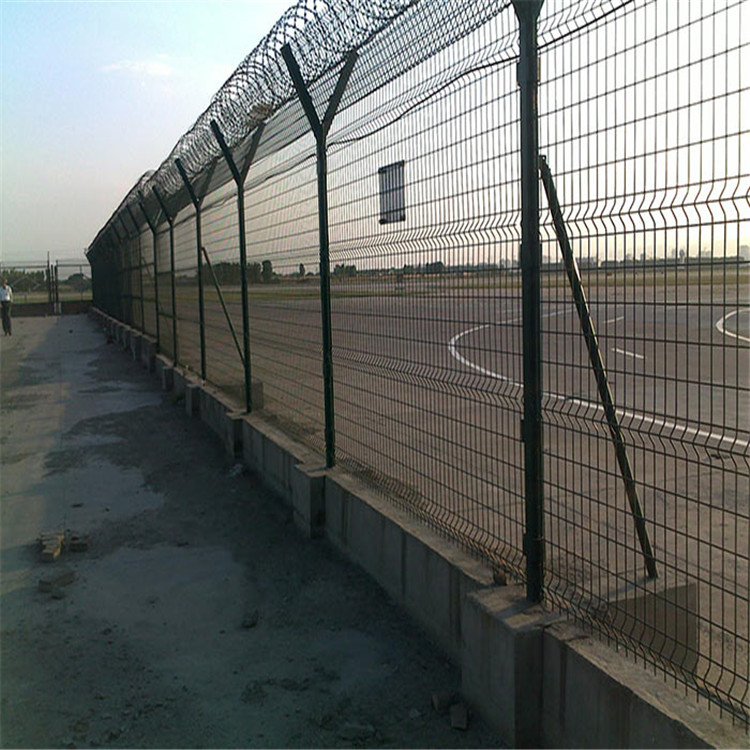 機場鋼絲網圍界就是應用干機場跑道兩側的隔離網,作用是防止行人誤入跑道,影響飛機正常運行的有效措施。這個機場鋼絲網圍界也分為機場內隔離與機場外隔離,機場內隔離的要求更高,頂部設置刀刺網,外隔離就比較簡單一些,主要還是防止閑雜人員進入飛行禁區(qū)。機場圍界廣泛應用干各大飛機場的邊界,用作邊界圍欄防護網,還可以于港口圍界防護,碼頭鋼絲防護網,飛機場防護護欄網, V型安全防御護網等。