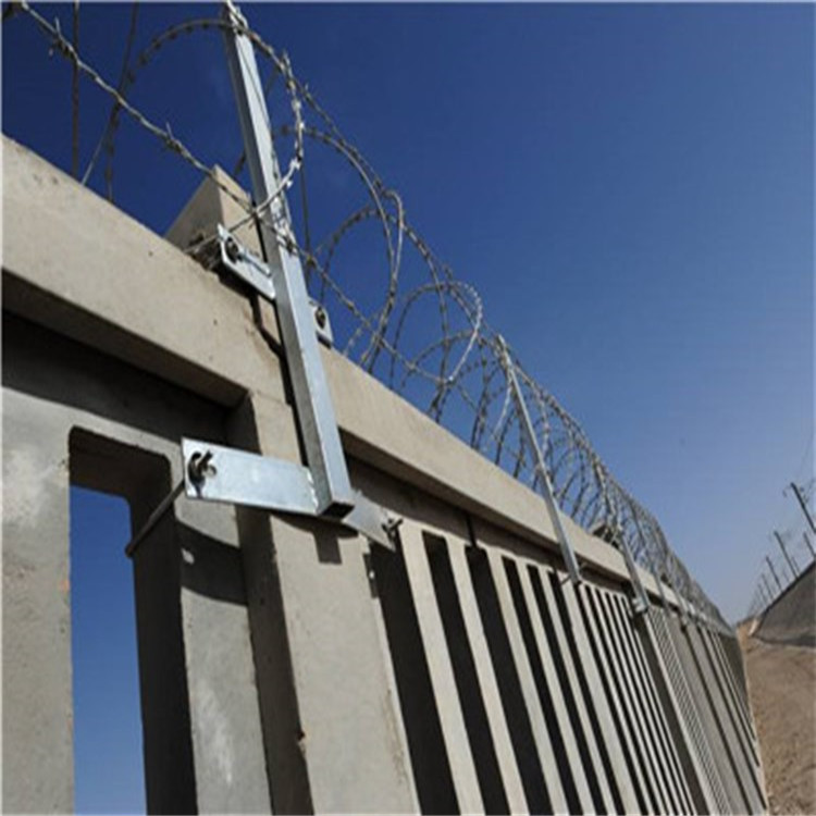 ??刺絲滾籠廠家將刺絲連接卡扣與固定在支架上的縱向拉筋相連接,縱向拉筋與支架的連接采用?2.5mm的冷拔鍍鋅鋼絲繞2圈后擰緊固定,支架設(shè)置在跨度3m防護(hù)柵欄的立柱和跨中位置,其他跨度僅設(shè)置與立柱上部,支架與防護(hù)柵欄采用支架抱箍連接。